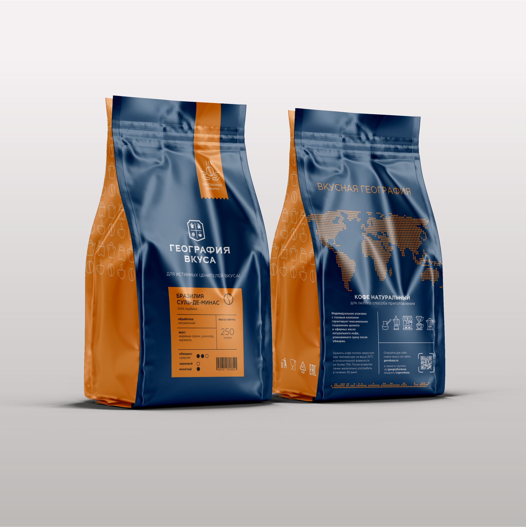 Упаковка кофе для сети магазинов «ГЕОГРАФИЯ ВКУСА»
